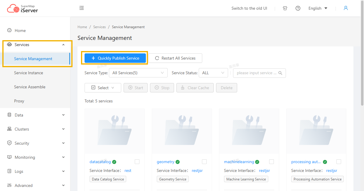 - To create a new Stream Data Service, click Service Management. Service- Service management, enter the service management page, and click Quick Create service. The specific steps are as follows: