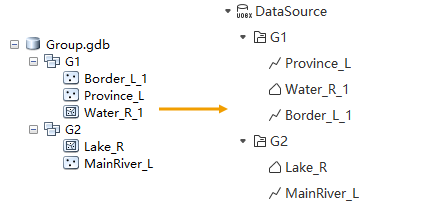 - Select Data: Check this option to select the data to be migrated in the pop-up Select Data dialog box. It supports selecting groups or datasets under groups. If unchecked, all data in the GDB will be imported at once.