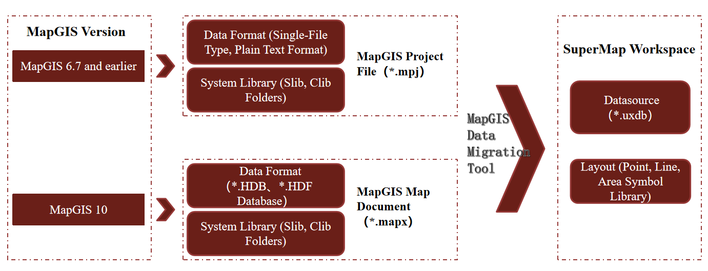 MapGIS data migration refers to migrating data and maps created in MapGIS to the SuperMap format, allowing for updates and editing within SuperMap.
