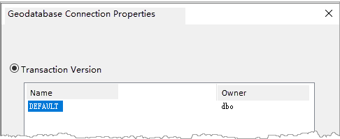 - Version: The version name format is {owner}:{name}, obtained from [Geodatabase Connection Properties - Transaction Version]. For example, if the geodatabase connection properties show the name as DEFAULT and owner as dbo, then the version here should be written as dbo.DEFAULT.