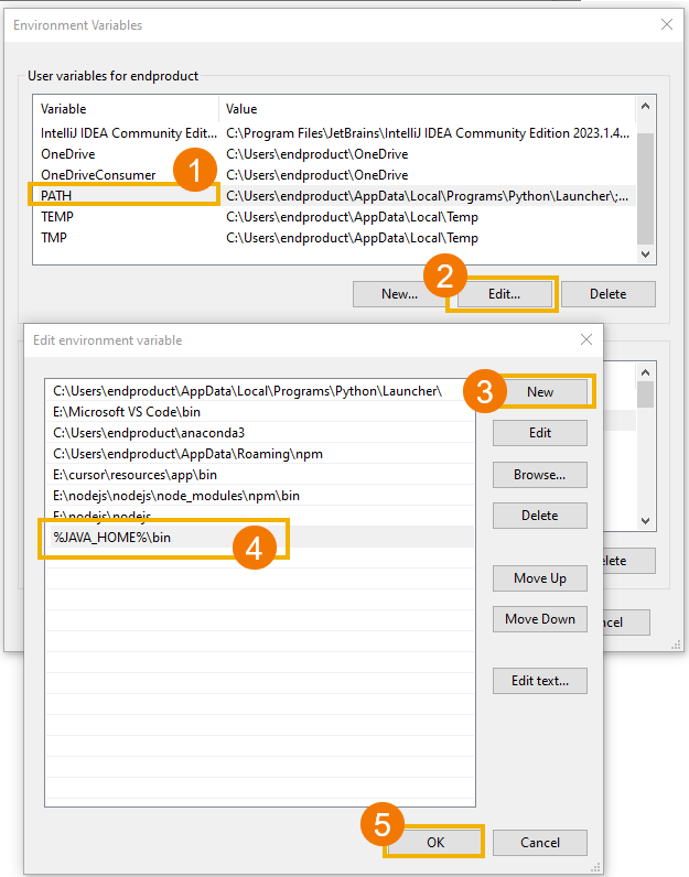 Download OpenJDK8 and extract it to a specified directory, then add its path to system environment variables.