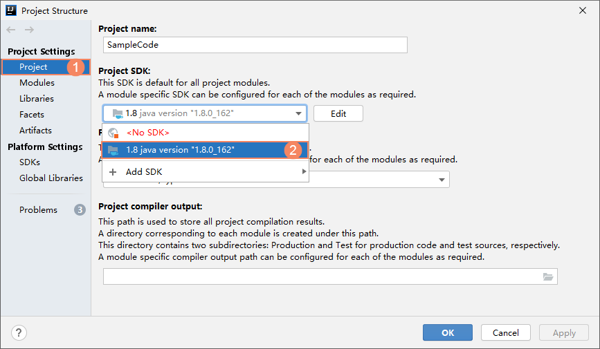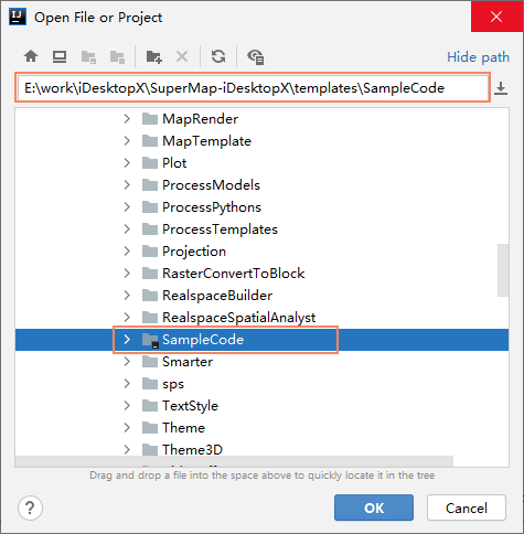 - Open Template Project: In IDEA, select File->Open->Navigate to %Product Package%\templates\SampleCode.