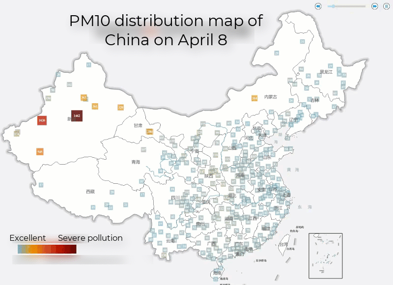 The following figure demonstrates PM10 concentration changes during China's 8th sandstorm event in 2023: