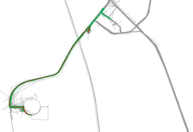 The similarity measurement of the line trajectory dataset uses the search dataset to find the trajectory line that is most similar to the search trajectory from the trajectory dataset. Returns trajectory data that is most similar to the search trajectory. The result dataset will retain all attribute fields of the trajectory data, and will also add "QueryFeatureID", "SimilarityFeatureID", and "Similarity" fields. The "QueryFeatureID" field is used to represent the feature field values of the search trajectory object; The 'SimilarityFeatureID' field is used to represent the feature field values of the resulting trajectory object; The "Similarity" field is used to represent the similarity or distance between trajectories, where all point objects belonging to the same search object query have the same similarity value. The provided trajectory similarity measurement methods include: *Hausdorff distance: based on the measurement method of track shape, the similarity is determined by calculating the maximum distance of the nearest point between two tracks. The condition is that the number of points between two tracks cannot differ too much. *Frechet Distance: Based on the idea of track dynamic programming, similar to the dog rope distance, the similarity is determined by calculating the longest distance between two tracks at the same time, which is sensitive to noise. *Dynamic time warping DTW: the point based measurement method has no limit on the track length, and has good effect, but is sensitive to noise. *MaxSimilarLength: This method is time constrained and only searches for trajectories within the same time period as the search trajectory. !