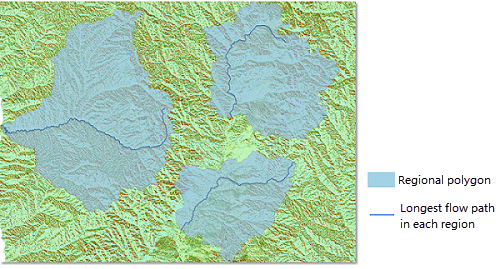 This feature traces the longest flow path by inputting an eight-direction flow direction raster dataset and regional area dataset, obtaining the longest drainage path within each region.