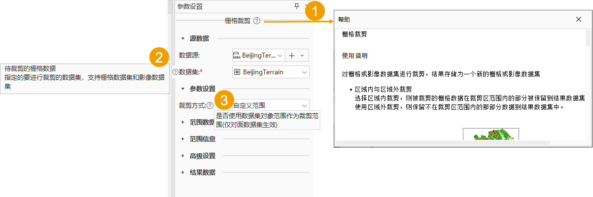 ① Click the help button here to open the tool's help dialog, where you can view the tool's instructions for use and detailed descriptions of all parameters.