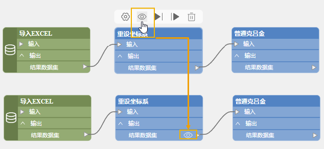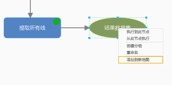 - Set Data Preview: Select the node you want to view data for and click the preview button in the toolbar above. After the model runs, you can view the processed result data in real-time using the preview button on the tool's output port. For traditional canvas style, after running the model, you can open and browse data via the "Add to New Map" option in the variable node's context menu.