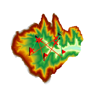 Multi-point visibility analysis evaluates intervisibility between multiple observer points and observed points on a given raster data surface, determining whether pairs of points can see each other.