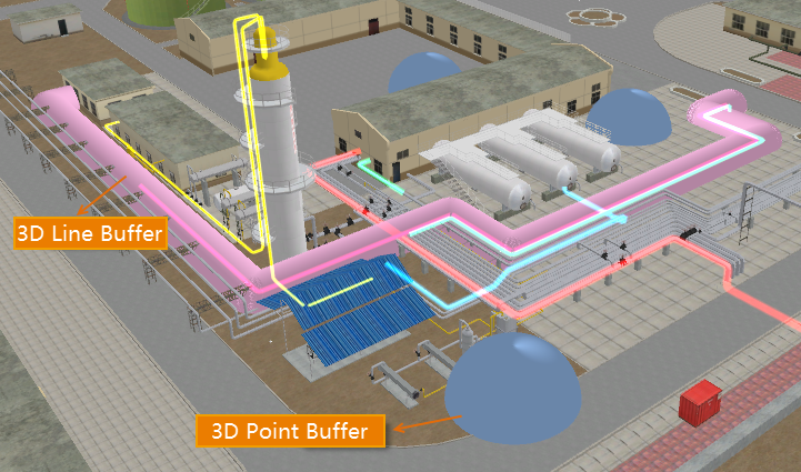 A 3D buffer refers to a sphere created around 3D points with specified radius, or a cylinder created around 3D line data with specified radius.