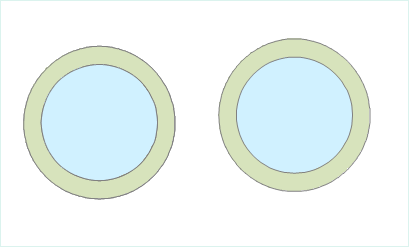 - Union buffer: Checking this option means merging the buffers of multiple objects. Unchecking it preserves the generated buffer results without merging. As shown below, generating multiple buffers for two circles (blue). The buffer result is shown in Figure 1; when moved, it reveals that the two buffers merge into a complex object, with Figure 2 showing the merged buffer. Note: Without checking union buffer, buffers of different objects do not merge and remain separate simple objects.