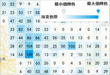 - Grid Rendering Style: Fill colors indicate statistical value distribution trends, transitioning from dark to light tones representing high to low values. Grid border styles can also be customized.