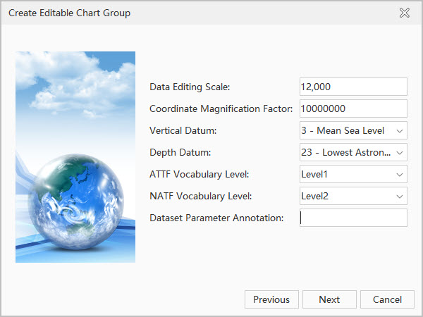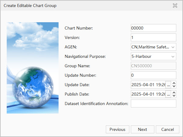 To produce a new nautical chart, you need to create a new editable chart dataset group. After successful creation, the corresponding dataset group will only contain the information entered during creation.