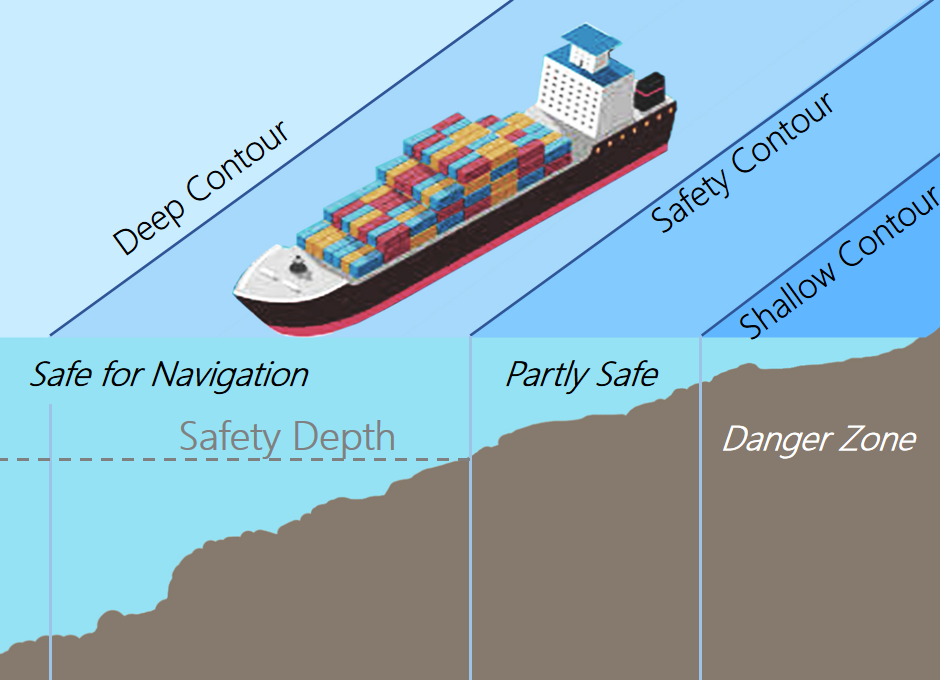Although waters here are shallower than the safety contour, vessels and ships can still navigate these areas temporarily in specific scenarios (e.g., near ports or narrow channels). Shallow contours help identify such potential passageways.