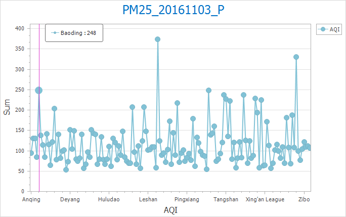 Example: To create a Beijing air quality line chart comparing 2014-2016 AQI indices by month: Set month as group field, add three AQI fields as statistics with Sum aggregation. Result shown below: