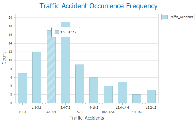 Example: Creating math score frequency histogram: Set scores as X-axis with 6 classes. Result shown below: