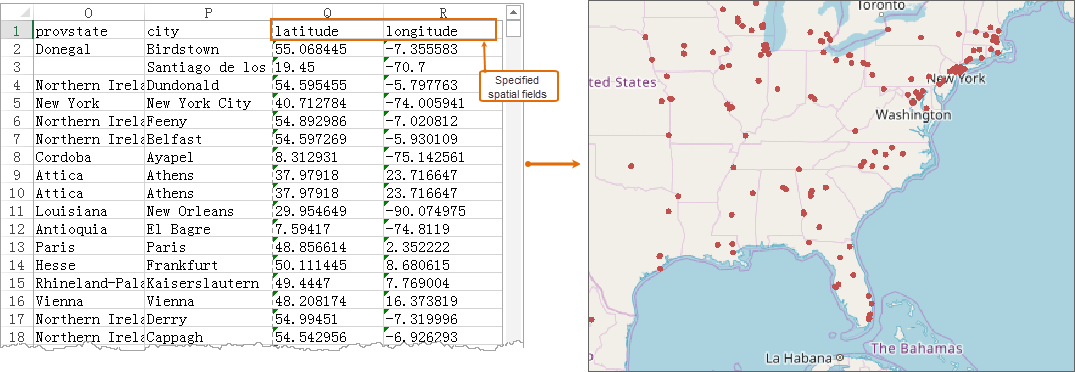 - Import Spatial Data: Determines whether to import as spatial datasets or attribute data. When the table contains spatial fields (e.g., longitude, latitude, elevation), enabling this option will create different dataset types based on spatial field values: