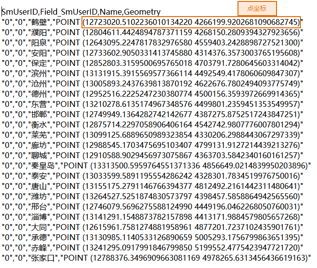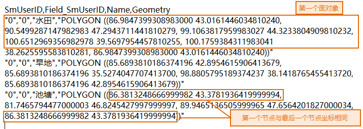 The first line of WKT text markup language represents select fields, separated by commas. Starting from the second line are geometry attributes, with each line representing an object.