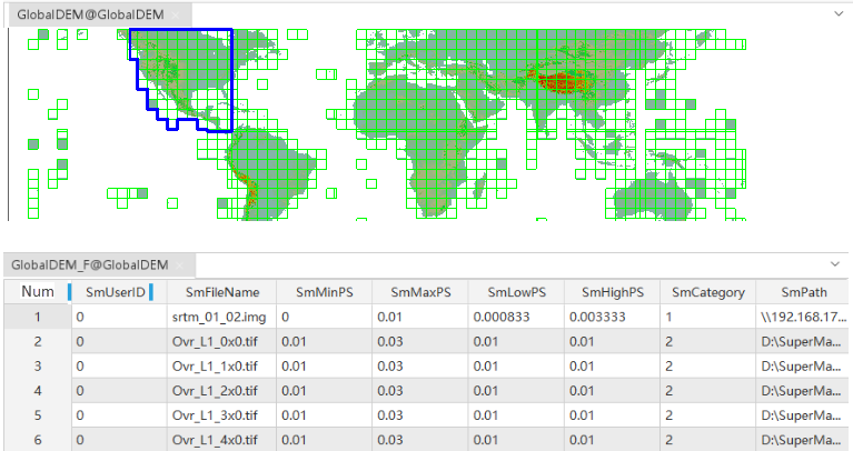 - If your data covers a large area with many stitched images and you need to view the data at very small scales, you can modify the SmMinPS and SmMaxPS field values in the footprint properties table so that the SmMaxPS value is still greater than the raster display resolution at small scales.