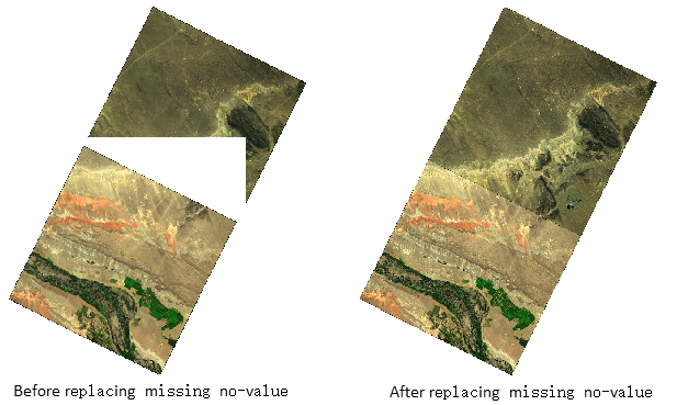 - Remove No-Value Overlay: To avoid no-value areas at image seams overlapping valid areas and to prevent abnormal display effects of overview images, starting from SuperMap iDesktopX 11i(2024), before building overviews, you need to set and enable no-value in the mosaic dataset properties panel (check "Replace Missing No-Value" and click the "Apply" button). The effect after enabling is shown below: