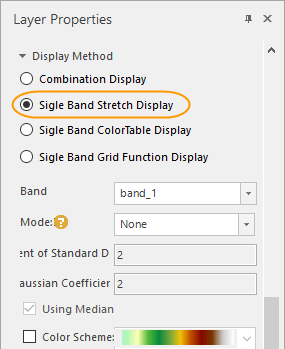 The display effect settings for mosaic dataset imagery are similar to those for regular imagery. Common adjustments include special value display, color table display, and stretch display. Additionally, raster functions can be configured to quickly generate 3D hillshade maps and orthophoto imagery. These settings are applied through the Image Layer Properties Panel.