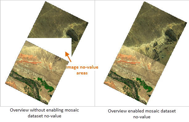 | Figure 4-2: Mosaic Dataset No Value Enabled, Pyramid Image No Value Consistent with Mosaic Dataset No Value |