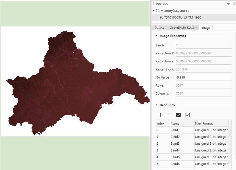 For example, a TIFF image file contains No-Value information (No-Value is 256) as shown in Figure 1-5. However, the actual image No-Value region has raster values of 0, indicating incorrect No-Value information in the file. When this image is added to the mosaic dataset for stretching, the statistical data used for stretching excludes the 256 No-Value, resulting in a significant display difference (Figure 1-6) compared to excluding the correct No-Value (Figure 1-7).