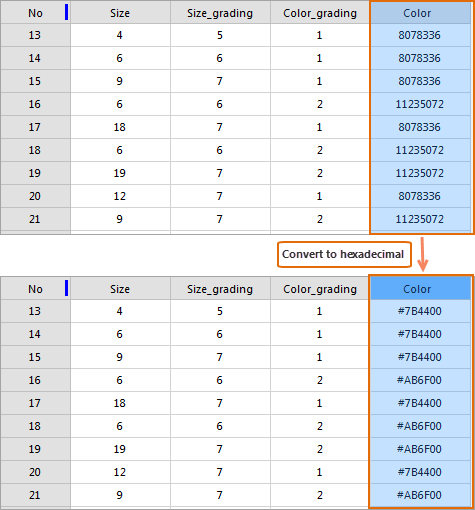 - Click the Display Hexadecimal button again to restore the column's original decimal display.
