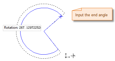 - After setting the start angle, continue moving the mouse and input the sweep angle in the parameter box. Press Enter to complete the arc.
