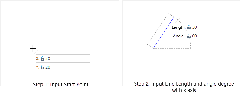 - Move the mouse. The map will display the real-time length and angle relative to the X-axis between the mouse position and the previous node (line starting point). Enter the length and angle values in the parameter input box (press Tab to switch between two input boxes), then press Enter to complete the line segment.