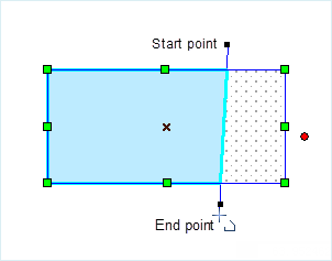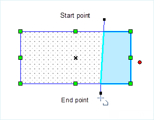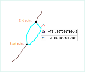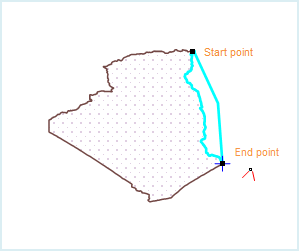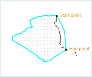 Ensure start/end points lie on polygon boundary. Blue area previews update result (Figure 8), with bold highlighted boundary. Press Ctrl/Shift to toggle results (blue area between bold segments in Figure 9).