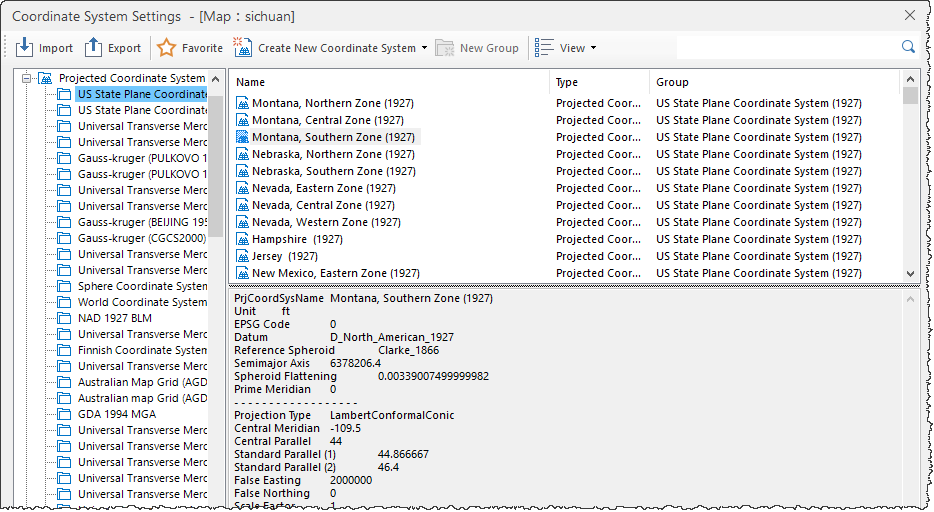 - If predefined systems are insufficient, users may create custom projected coordinate systems. Refer to New Projected Coordinate System.