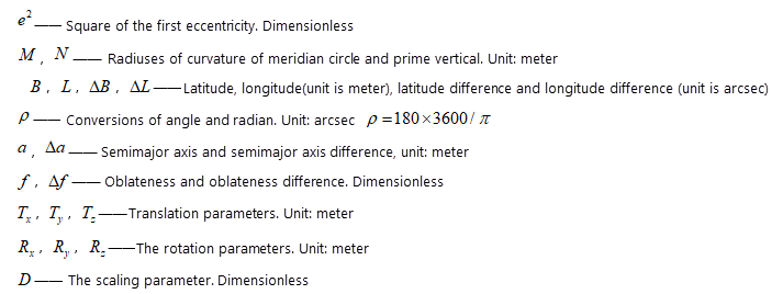 - Position Vector (7-para), Coordinate Frame (7-para): Applicable for coordinate transformation of control points in provincial and national areas using space rectangular coordinates.