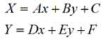 There are six parameters (A, B, C, D, E, F) in the formula, which can be determined by selecting corresponding control points between the registration layer and reference layer. Theoretically, at least three non-collinear control point pairs are required to solve these parameters. When setting constant terms C and F to 0, a minimum of four points are needed. In practice, four or more control points are typically used for linear registration. Parameters are solved using least squares method.