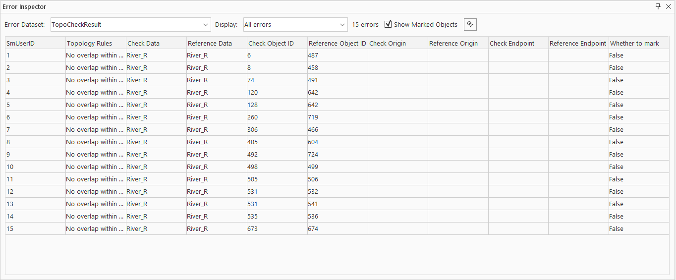 - Topologically Select button: Directly selects topology error datasets on the map.