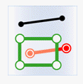 In the following diagrams, green indicates source objects, red indicates targets meeting spatial relationships, and black indicates non-qualifying targets.