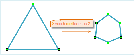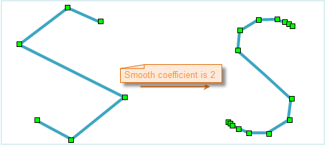 The effective smoothness value should be no less than 2. Higher values result in more nodes along line objects or polygon boundaries, producing smoother curves. Recommended range: [2,10].