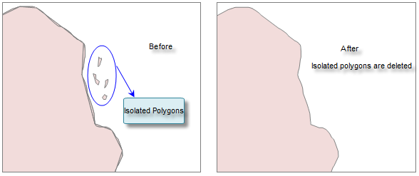 - Automatically Delete Isolated Sliver Polygons: When checked, isolated polygons below minimum area will be deleted (as shown in Figure 3):