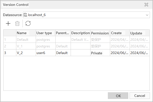 Version management is used to create and delete subversions, allowing different datasets to be distributed to multiple editors for modification. Each version of the data is edited independently, without affecting others. The permissions for managing data versions by different database users are as follows: