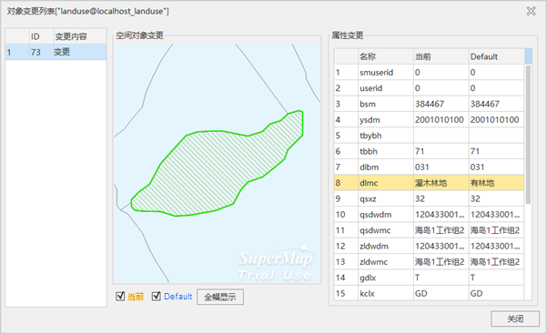 - In the displayed Commit Changes dialog box, click the .. button in the front row of View Changes to enter the object change list dialog box, as shown in the following figure, which shows the content of object change.