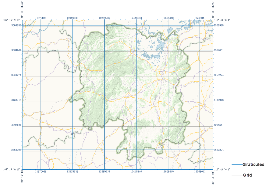 - Projected Coordinate System Maps: Support both graticules and kilometer grids