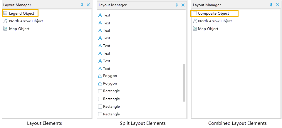 - Split Layout Elements: Split legends and compound objects into basic elements.
