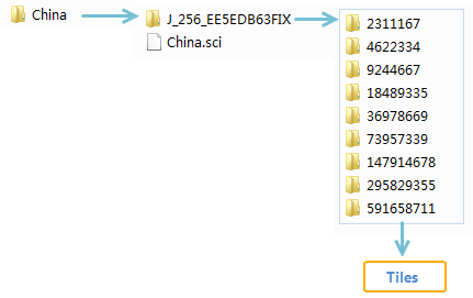 - After configuration, execute tile generation. Output includes *.sci configuration file and tile folders organized by scale. Open results via Open Datasource.
