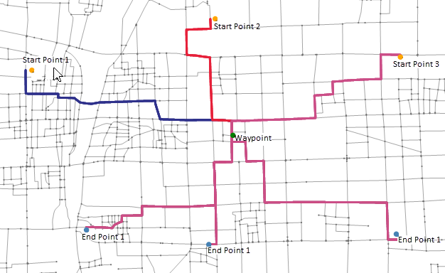 Multi-point optimal path analysis extends optimal path analysis by supporting multiple start and end points. Each start point will sequentially pass through specified routing points to reach all end points.