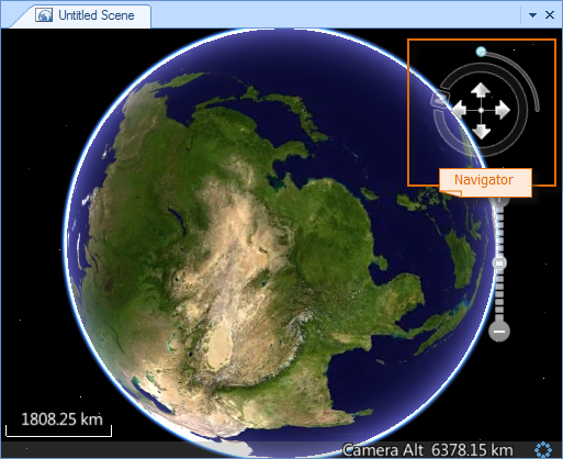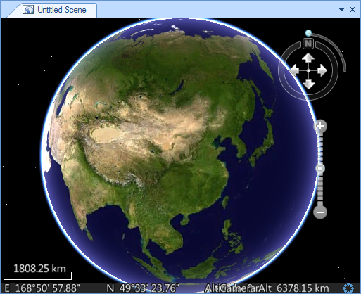 The following figure shows the effect of global operation. Notice the change of Compass in Scene. (Compass is used to control the viewing angle of the Earth in the scene, as well as operations such as zooming in and out of the scene.)