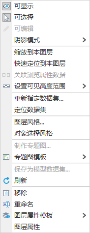 - Operate the layer as required. Currently, the operations that can be realized through the Context Menu are as follows: