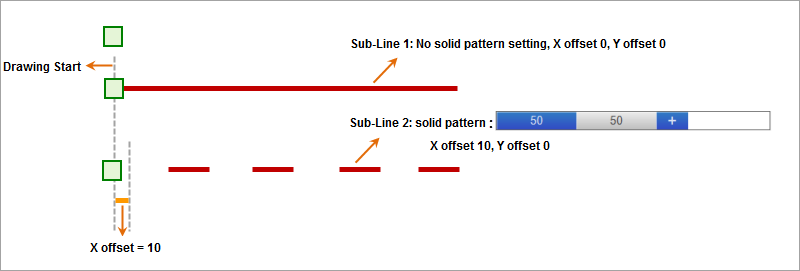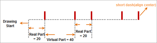 In summary, for such sublines, virtual-real mode means: for the solid part of the subline, draw content for the solid part length, and for the dashed part, do not draw anything for the dashed part length. The unit for length values is 0.1 mm.