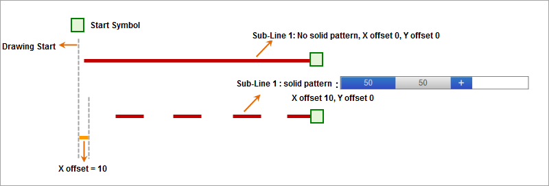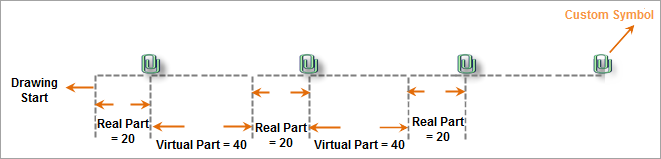 " are called symbol type sublines, composed of specific symbol elements. As shown in the figure below, if virtual-real mode is set to solid part value 20 and dashed part value 40, the symbol type subline will be drawn as follows: