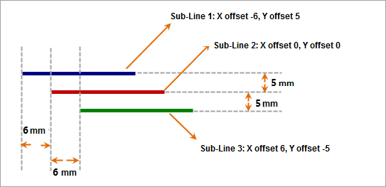 Composition method: Apply a horizontal offset of 2 mm and a vertical offset of 2 mm to subline 1, fix the color of subline 1 as: red RGB(255, 0, 0); fix the color of subline 2 as: green RGB(0, 255, 0), and set the line width to 1 mm. |