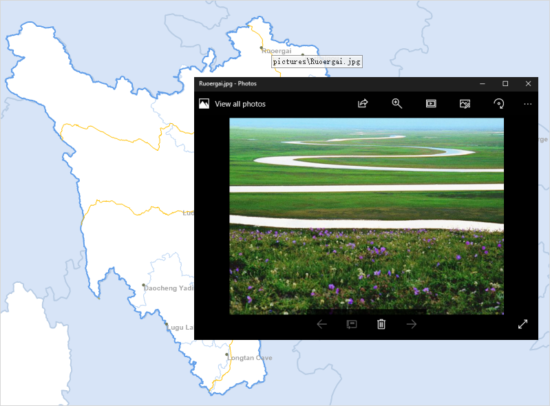 - Attach related images for specific vector objects, such as adding real photos for buildings, lakes, scenic spots, and enable viewing.