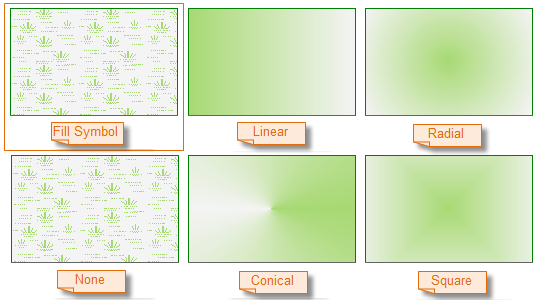 - Radial: Gradient is radial, from the center to the surroundings.